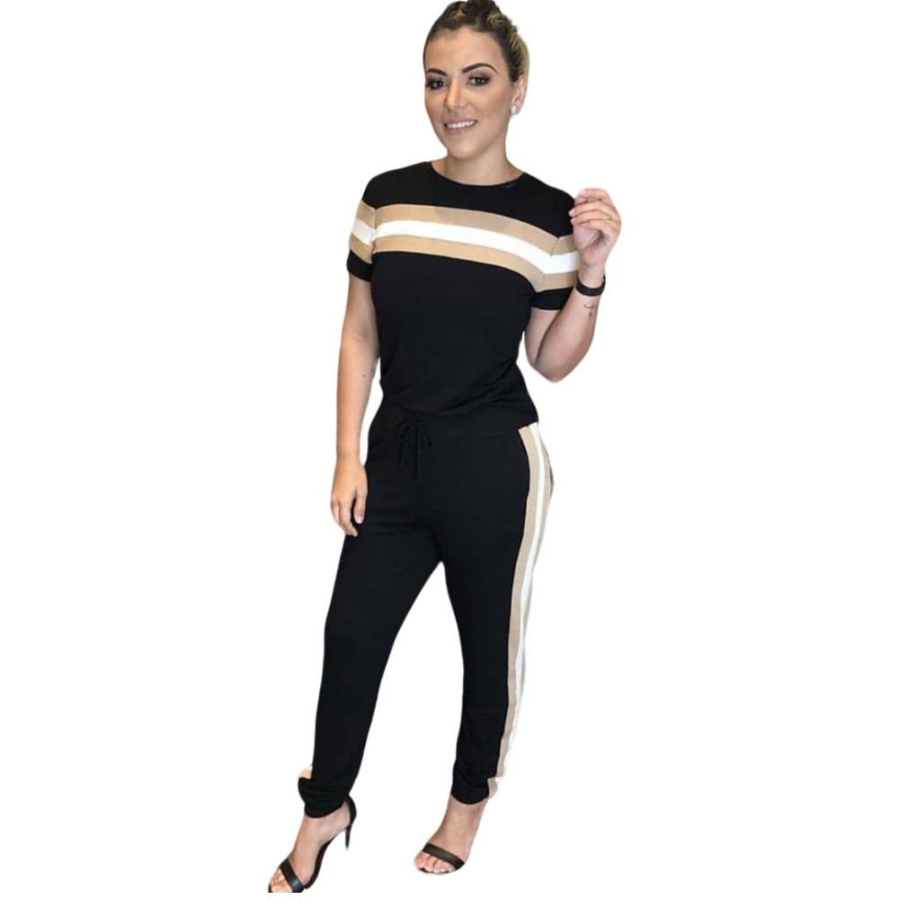 Conjunto de calça e blusa manga curta em crepe com elastano