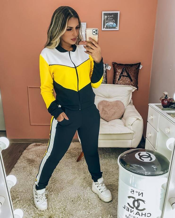 Conjunto de calça e blusa em malha crepe com elastano. É um tecido bem encorpado, ideal para dias frios sem perder a sua beleza, elegância. Super versátil e muita praticidade com um look despojado, permitindo manter sua elegância seja com salto ou tênis, sua versatilidade permite várias combinações sem desprezar o fashionismo e as últimas tendências.